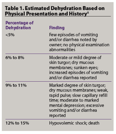 | 6~8% 탈수 | 피부의 회복탄력성이 떨어지는게 관찰되는경우 점막이 말라있으며 안구가 들어가 있어 보이거나 3안검이 돌출되어 있는경우 구토나 설사의 증상이 점차 증가하는 양상을 보이는경우 |