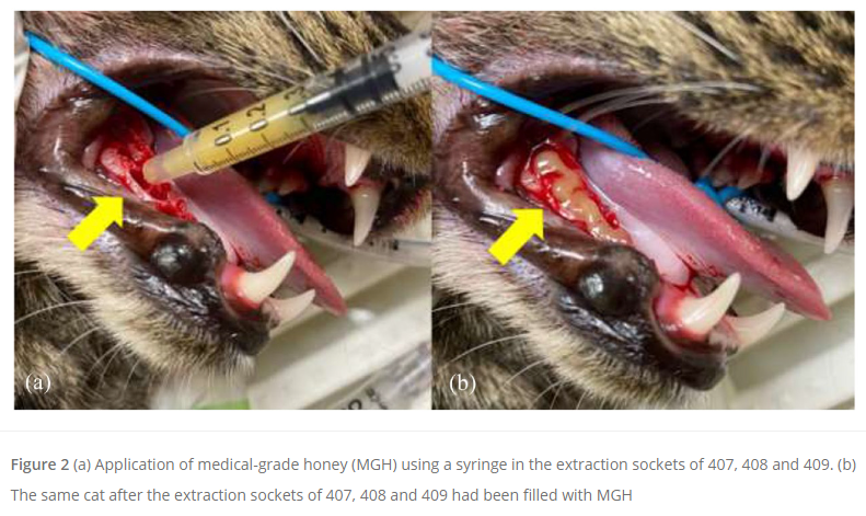 그대 치료 기간을 단축시키고 염증을 컨트롤할 목적으로 발치한 공간에 의료용 꿀을 충진하는게 도움이 된다는 논문