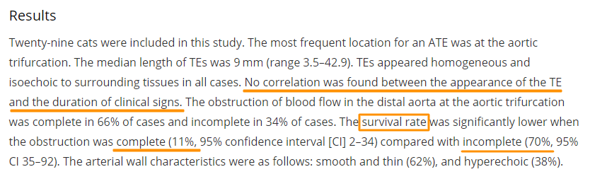혈전증이 있는 고양이의 예후를 초음파로 예측할 수 있을까?