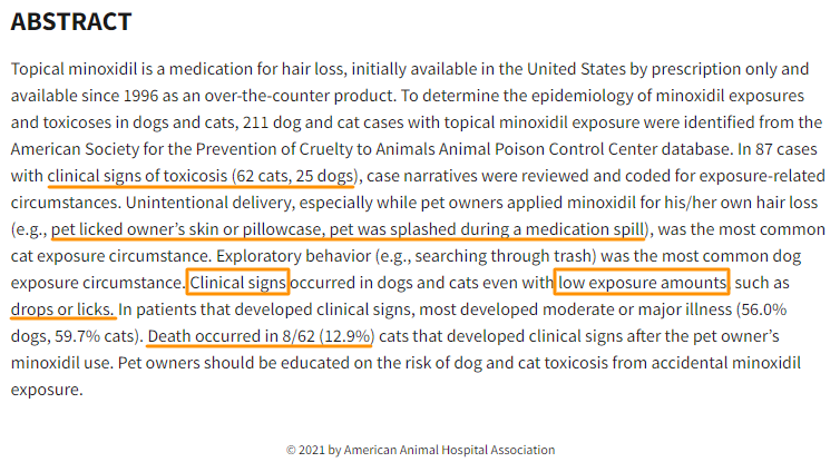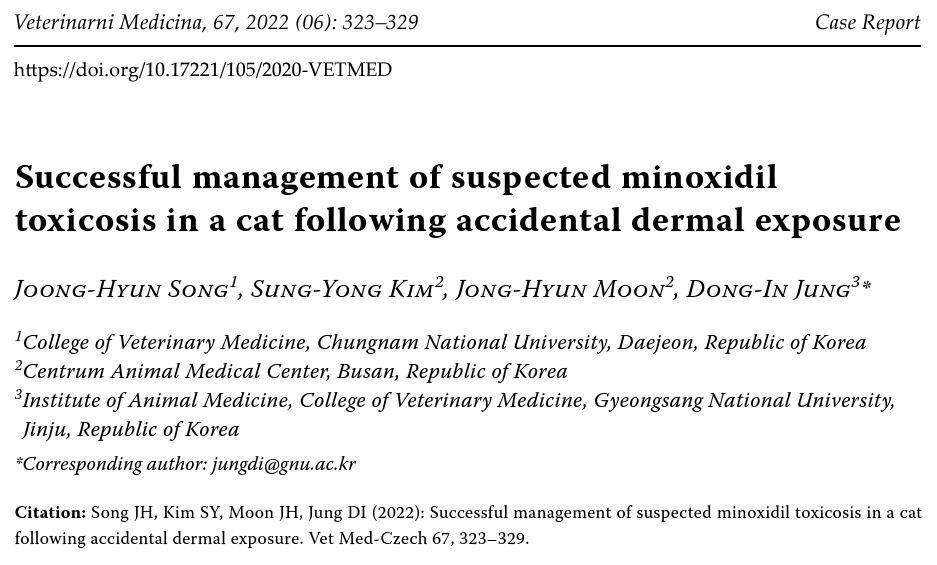 탈모치료제 미녹시딜에 의한 개와 고양이 독성