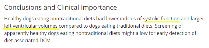 동물병원과 자연주의 식단주의자들간의 오랜 논쟁의 공방중 한 귀퉁이이다. 물론 우리나라에서는 드문 확장성심근병증인 DCM이라는 질환을 가지고 비교한 논문이다. 식이성으로 유발된 DCM 환자