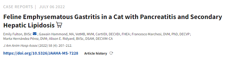 췌장염이 심한 고양이는 다양한 증상이 있을 수 있으나 그중에서 특이하기도 하고 드물게 발생한는 기종성 위염에 관한 논문이 나왔다.