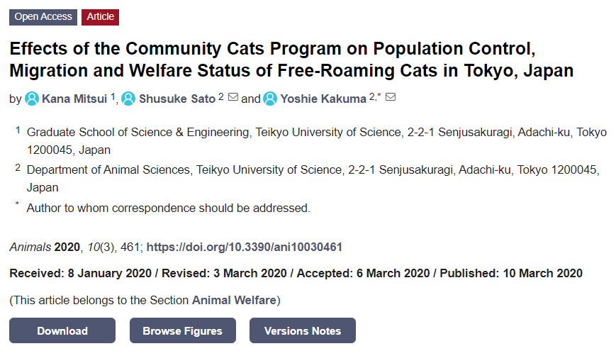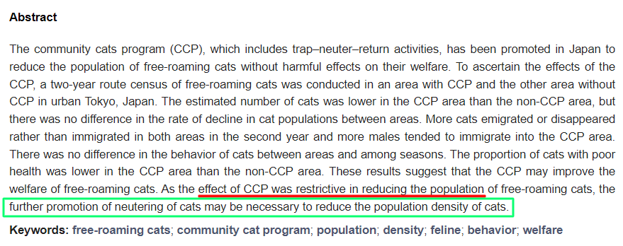 일본에서 나온 논문인데 그 유튜버는 이 논문을 근거로 TNR이 무의미 없다고 "단언코" 말하고 있다.