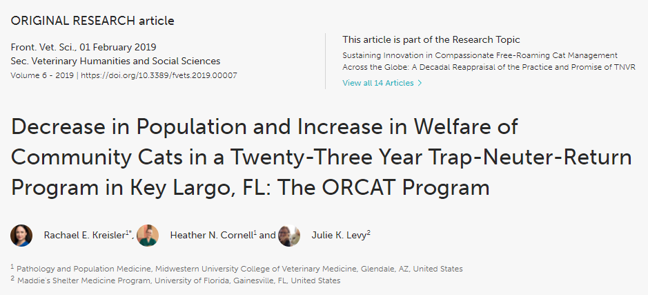 TNR로 고양이 개체수가 감소했다는 논문