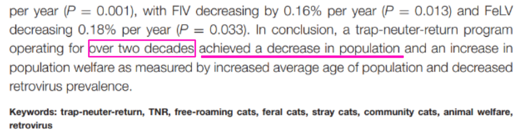 23년에 걸친 TNR 사업을 한 결과에 대한 논문이다.
