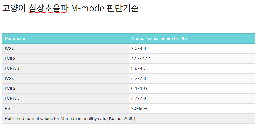 | Published normal values for M-mode in healthy cats (Koffas, 2006) | |