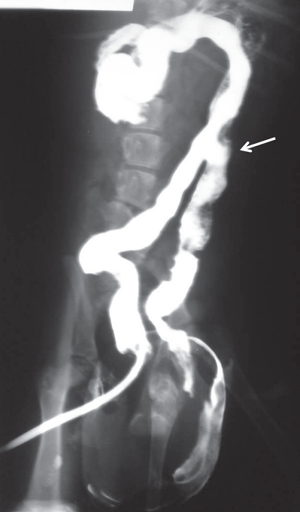 방사선 사진상으로는 다리뿐 아니라 장골이 하나 더 존재하는 상태로 관찰된다.
