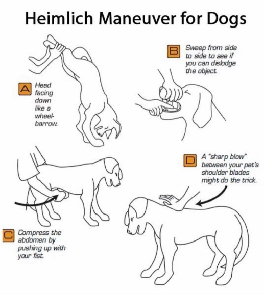 목에 이물이 걸려 숨이 막힌 상황에서 숨을 쉬지 못하는 쵸킹 상태가 된다면 집에서 보호자가 응급 처치를 해야 한다.