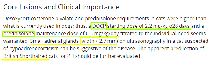 이번에 소개하는 논문은 부신피질 기능저하증 중에 원발성 저하증에 해당하는 환자의 치료를 개에서 주로 사용하는 desoxycortisosterone pivalate 즉 DOCP와 prednisolone으로 치료할 때 어떻게 처치해야 하는지에 대한 논문이다.