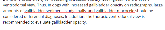 그렇게 눈에 익혀 놓다보면 무기질 밀도까지는 아닌데 연부조직 밀도의 증가 양상으로 담낭이 방사선상에서 보이는경우가 많다.