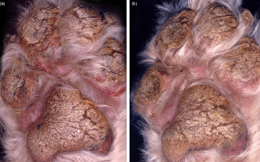 팔꿈치, 발꿈치, 코, 음낭, 옆구리, 배쪽 복벽, 다리 말단부, 점막과 피부의 연결부위(입, 눈, 항문, 음부) 등의 딱딱해지는 발적