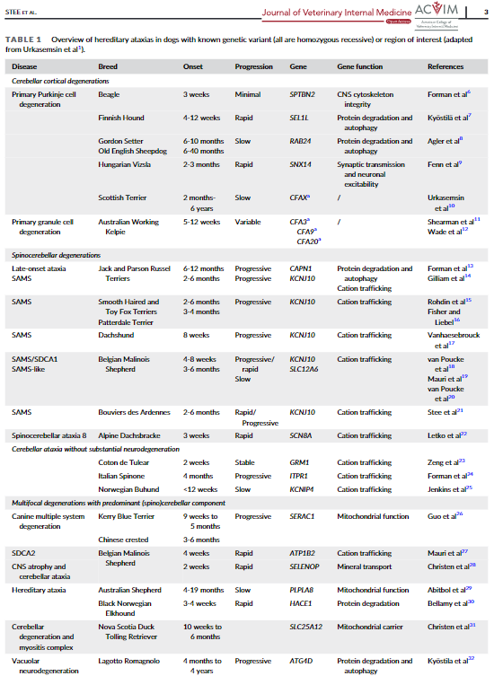 개의 유전성 운동실조증의 품종별 발생에 대한 리뷰