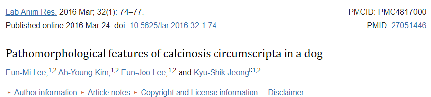 사람에서는 Calcinosis cuti circumscripta 즉, 국한성피부석회화증으로 알려져 있으나