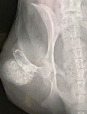 방사선 검사를 해보면 석회화 된 대형의 종괴가 특징이라고 할 수 있다.