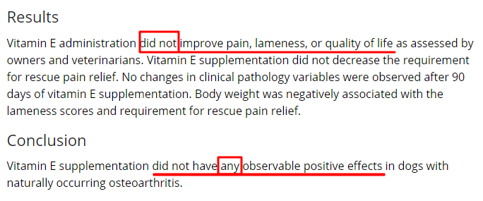 비타민E와 강아지 관절염? 아무 의미 없다.
