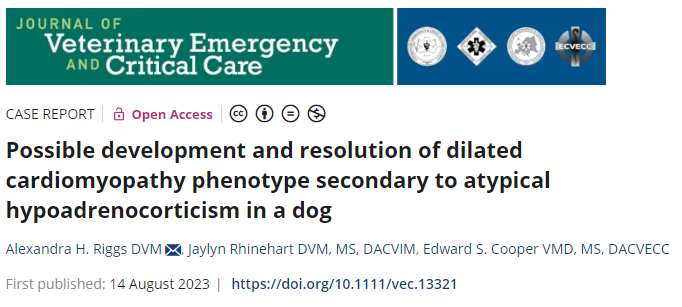 사람에서는 보고되어 있는 확장성 심근병증과 에디슨명(Addison's disease in dogs)의 상관 관계에 대해서 처음으로 언급되는 수의학적 논문이 나왔다.