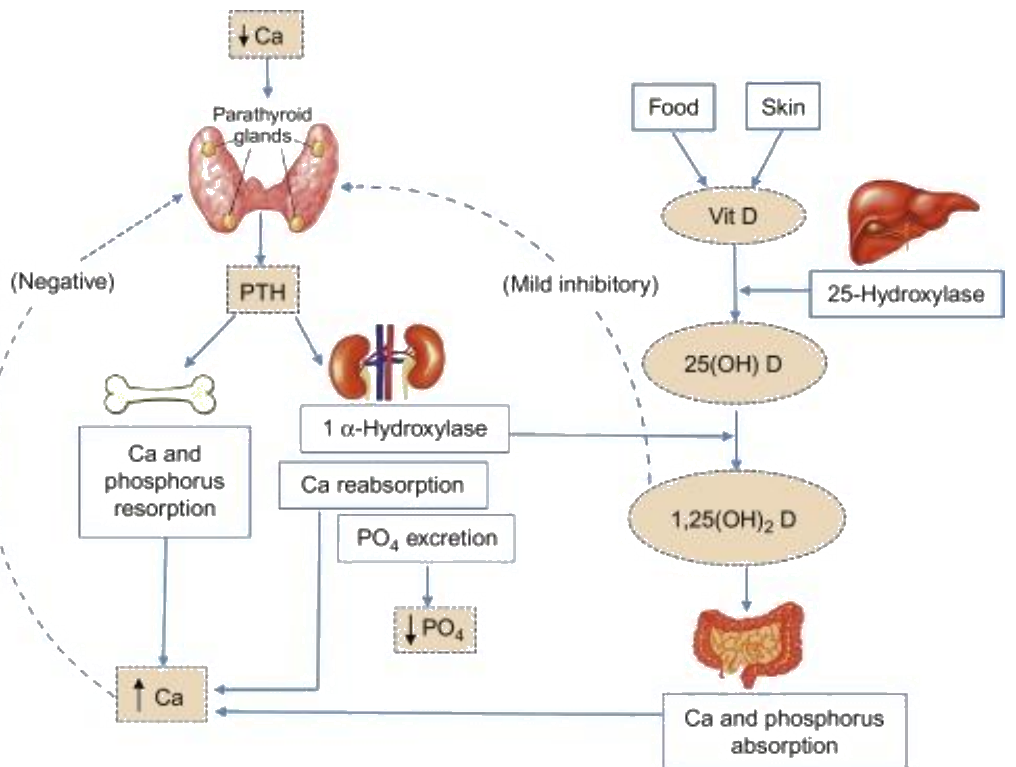 증가한 경우 : 고인혈증 hyperphosphatemia