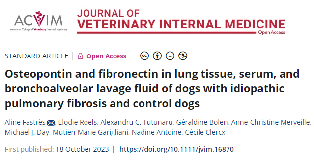 그래서 대부분 임상증상과 기관세척술의 결과를 가지고 추정하고 있는 실정이다. 문제는 기관세척술 또한 마취된 상태에서 실시하다보니 보호자의 저항뿐 아니라 호흡이 좋지 않은 환자에 대해 검사를 해야 하는지에 대한 수의사의 갈등도 많은 실정. 이번에 이런 폐 섬유화증의 간접적 진단에 대한 실마리 격에 해당한 논문이 나와 소개한다.
