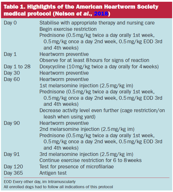 전미심장사상충 학회에서 2018년에 발간한 표준 치료 프로토콜이 얼마나 잘 치료하느냐에 대한 후향논문이다.