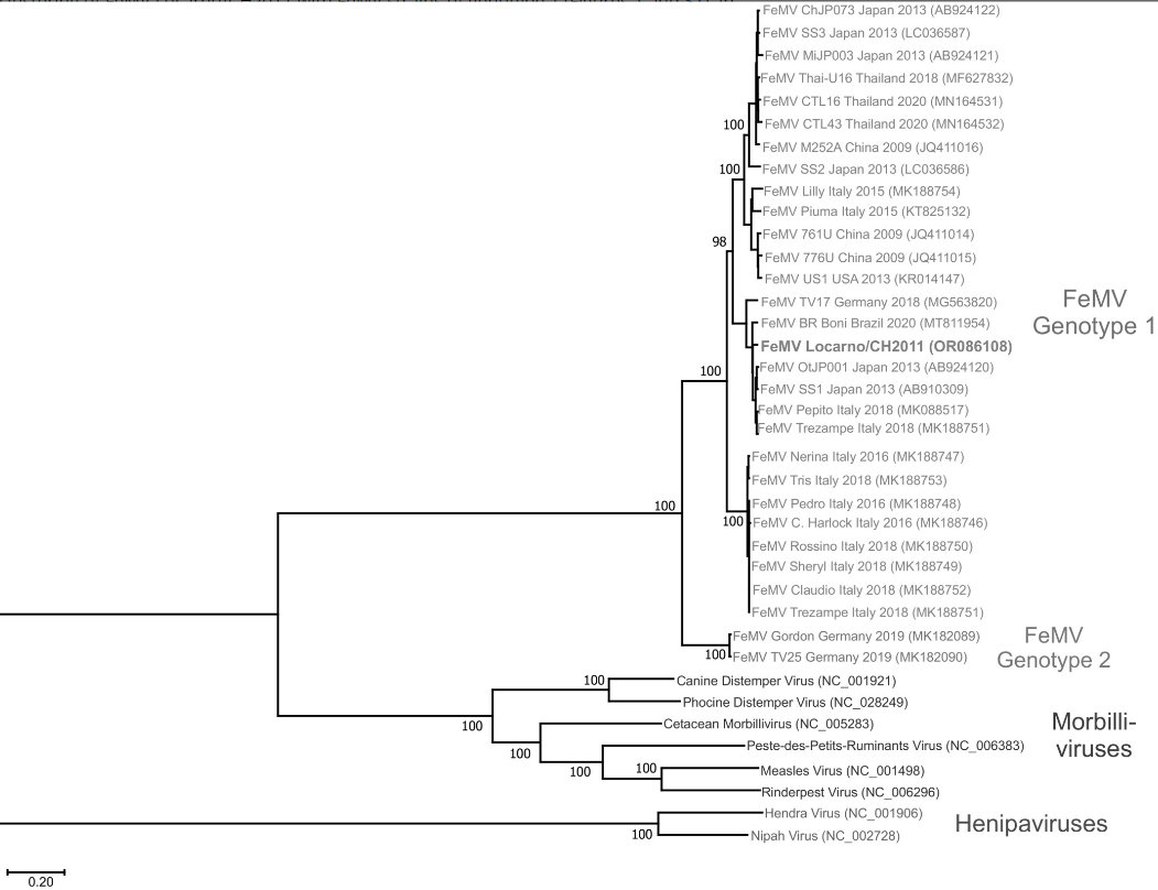 고양이에서 morbillivirus 가 신부전을 유발하는것으로 알려진지는 오래되었으나 국내에서 잘 알려져 있지 않다. 우선 전세계 현재까지 보고된 사례의 지도상 표기는 붉은 색이 현재 보고된 국가들