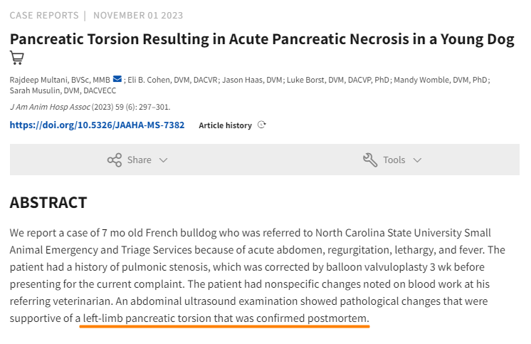 이번에 미국동물병원지에서 보고된 증례는 췌장의 좌측엽이 염전된 케이스였다.