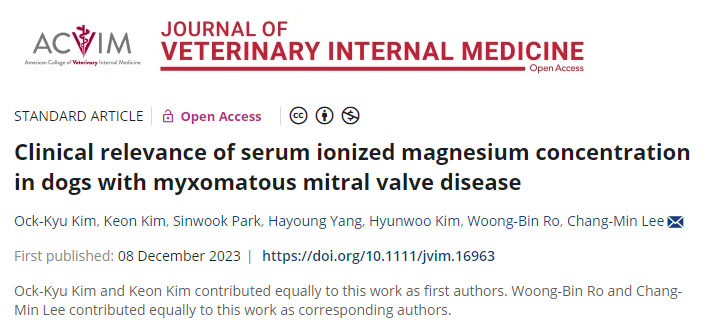 이번에는 개에서 신부전이 아닌 심부전 환자에서 예후 평가에 마그네슘이 중요한 역할을 할 수 있다는 논문이 나와 소개한다.