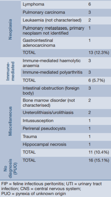 대사성 원인 갑상선 기능항진증 신생물 종양 염증성 감염성 바이러스 감염 고양이 백혈병 바이러스 고양이 에이즈 고양이 전염성 복막염 범백혈구 감소증 고양이 허피스 바이러스 감염증 칼리