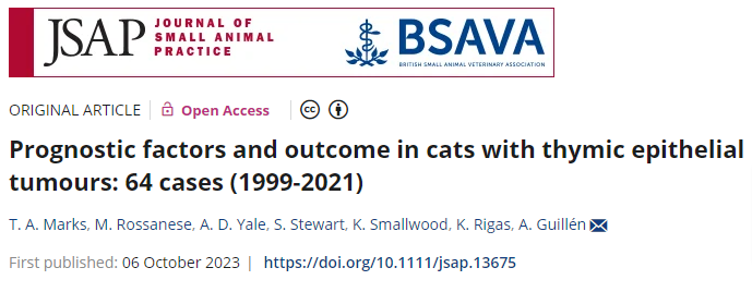 thymic epithelial tumor가 있는 64마리에 대한 조사 논문이다. 이 종양에서의 심각도 구분의 기준이 일반적으로 수의학에서 사용되지 않았던 생경한 것이라 소개한다.