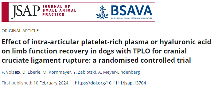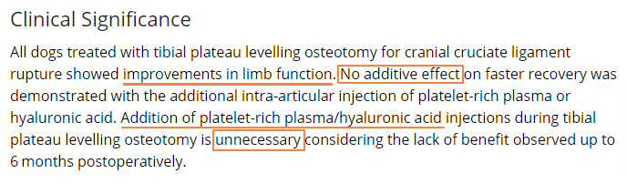 십자인대 수술로 TPLO를 한 강아지들의 관절낭에 혈소판 주입?