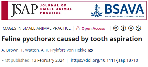 고양이가 가 농흉이 생겼는데 그 원인이 빠진 이빨을 숨 쉬다가 폐로 넘어가서 생겼다,라는 세상에 이런 일이 같은 논문이다.