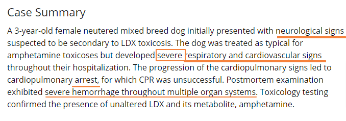 ADHD 치료 약물(lisdexamfetamine)의 개에서의 독성 보고