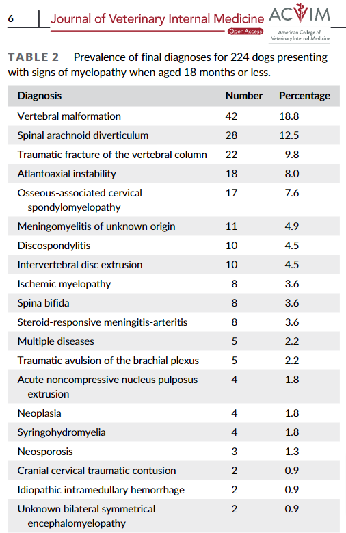 나이 든 개에서 척수 신경 관련한 증상을 보이면 1차적으로 IVDD를 먼저 의심한다. 하지만 2살 미만의 젊고 어린 강아지들에서도 동일한 감별진단 리스트를 사용해도 될까?