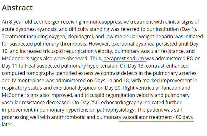 폐혈전에 의한 폐동맥고혈압 반려견의 치료