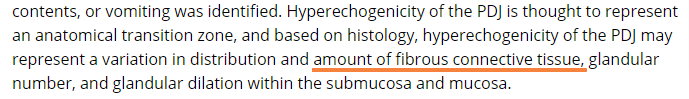 위 십이장의 해부학적 분기점으로 섬유결합조직이 많아 보이는 현상으로 이해하면 무리가 없을것이다.