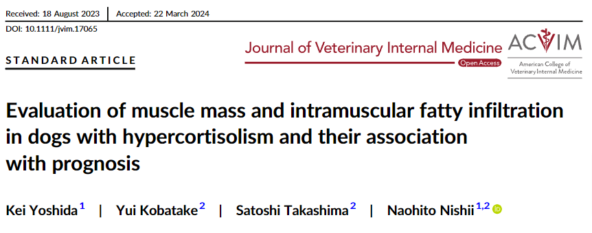 본 연구는 반려견에서 고코티솔혈증(Hypercortisolism, HC)이 골격근 위축과 근육 내 지방 침착에 미치는 영향을 평가하고, 이러한 근육 변화가 예후에 미치는 영향을 분석하였습니다. 주요 결과는 다음과 같습니다: