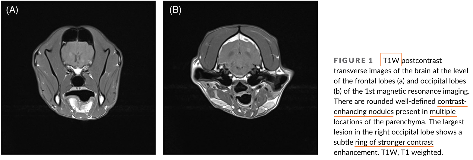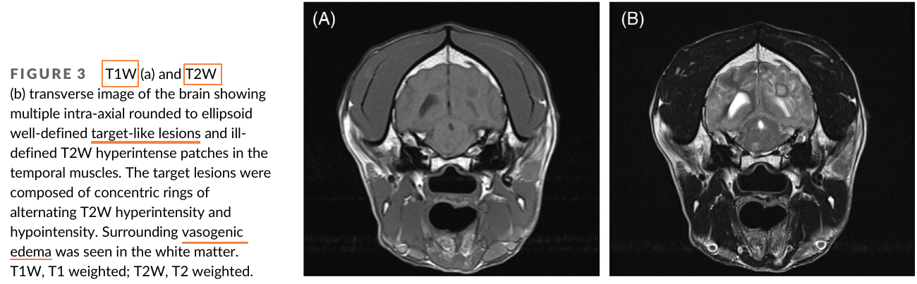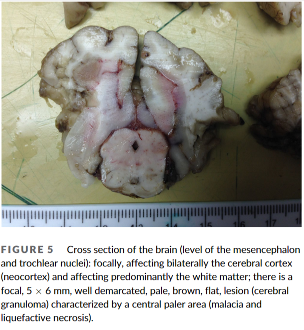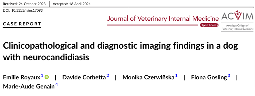 칸디다는 곰팡이성 질환으로 보통 거론되는 게 에이즈 환자등, 면역계가 무너진 환자에서 이차적 기회감염에 해당하는 부분이다. 개에서도 마찬가지로 대부분 면역 억제 치료를 받을 때 주로 증상이 나타날 수 있는데 이번 증례는 뇌에 감염이 있을 때의 증례, 특히 MRI 촬영과 부검을 통한 재확인이 매우 가치 있는 논문이라 하겠다.