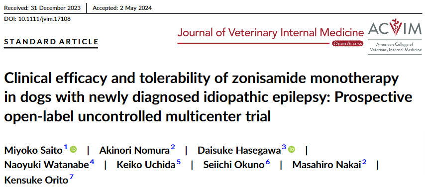 특발성 간질의 경우 다른 발작의 원인을 모두 배제한 후 최종으로 나오는 진단명이니 우선 진단을 잘 하는게 우선해야 한다. 이 후 항경련제를 사용해야 하는데 이런저런 걱정에 각종 보조제가 첨가되면 약물의 총량이 늘어나 약을 먹이는것이 오히려 경련을 자극하기도 한다. 그래서 약을 최소한으로 해야 하는데 본 논문은 zonisamide의 단독 처치를 했을때 어떤 효과를 보이는가? 에 대한 논문이다.