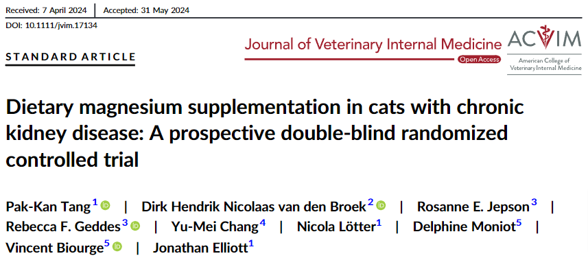 이전에 마그네슘의 혈중농도가 만성신부전이 있는 고양이에서 보일 수 있는 생존율과의 관계에 대한 논문을 소개한 적이 있다.