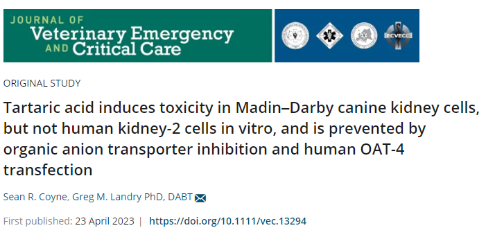 이번에 나온 응급의학회 학술지에서는 사람세포와 개의 세포를 가지고 tartaric acid가 어떻게 독성을 보이는지를 실험한 결과를 보고했다.